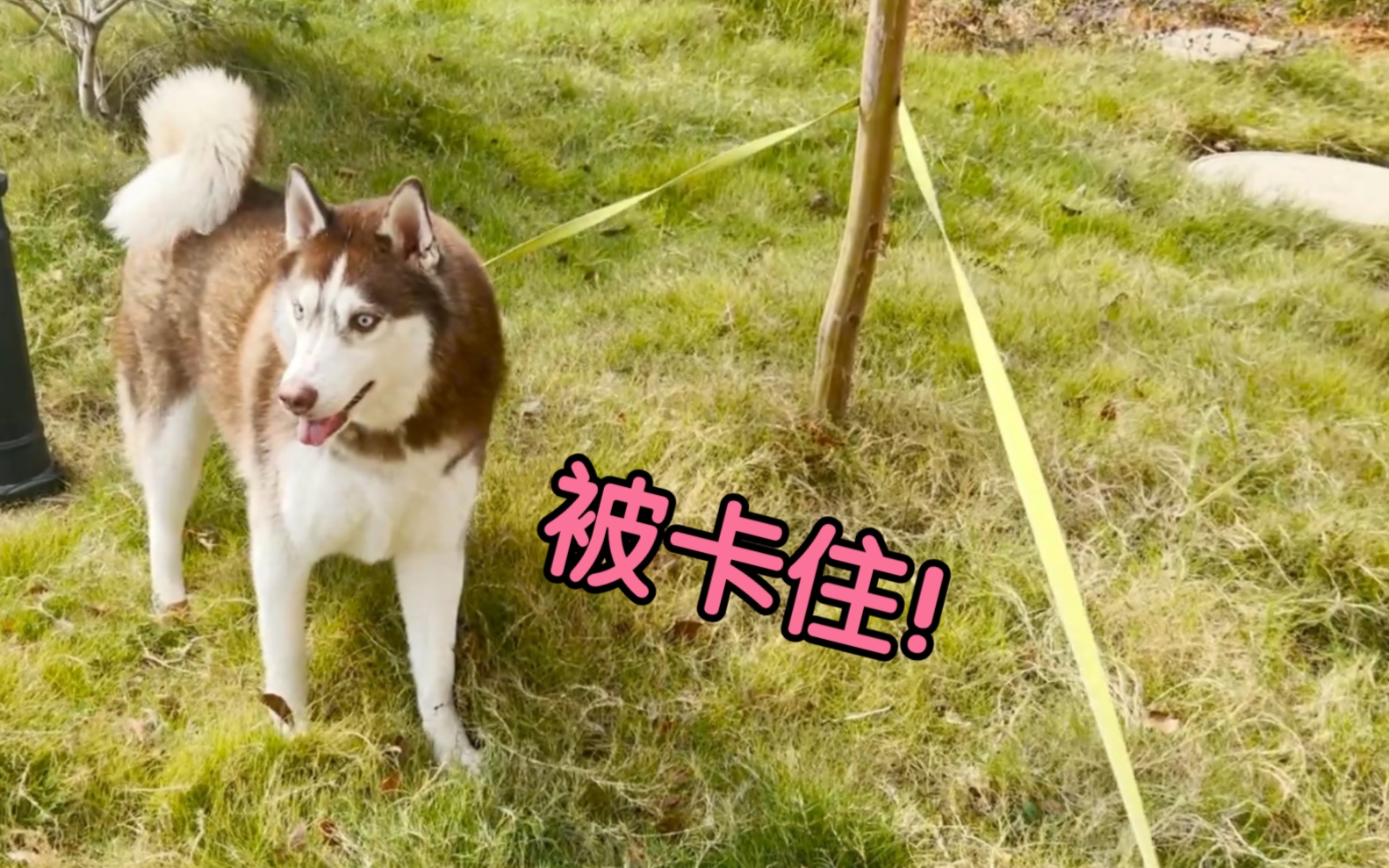 Memakai kostum dinosaurus mengagetkan Husky, bagaimana ekspresinya?