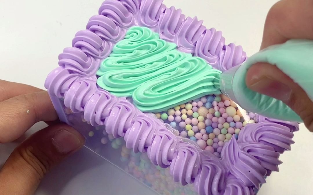 Slime buatan tangan anak-anak, membuat es krim pelangi