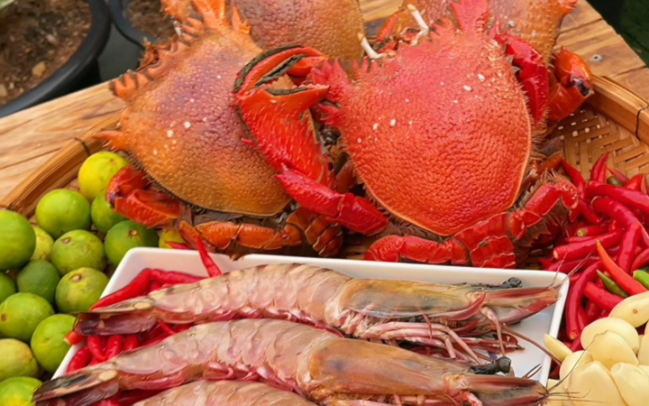 Ah Rema: Prasmanan hidangan laut menara kepiting mentah asli Thailand, udang bakar, kepiting hidup b