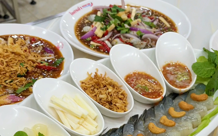 Masakan Thailand: Acar mentah ala Thailand berupa "sandal jepit" dan udang, salmon, serta segala bah