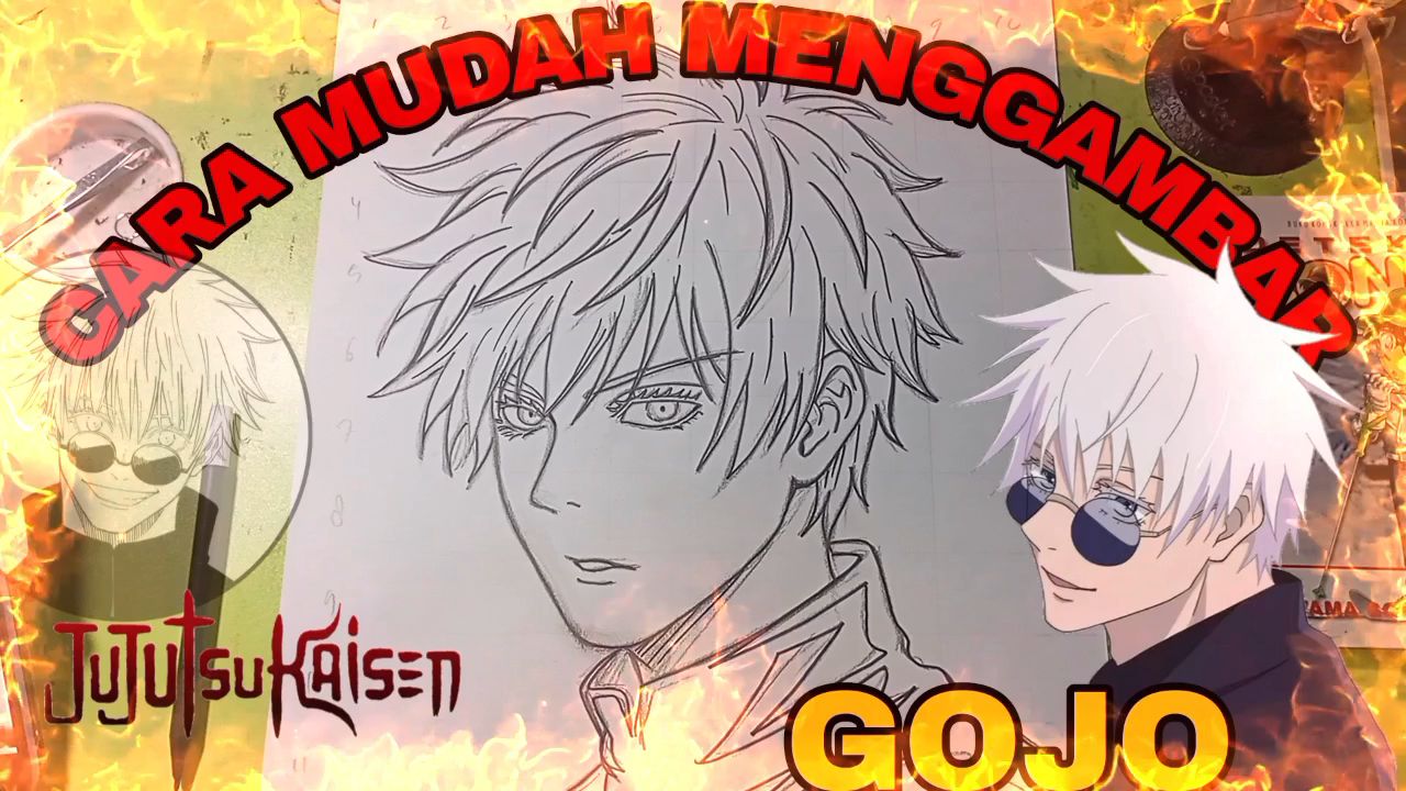cara yg sangat mudah menggambar anime jujutsu kaisen, gojo