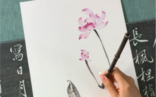 Proses lukisan cina teratai dari awal, lukisan cina teratai tanpa tulang