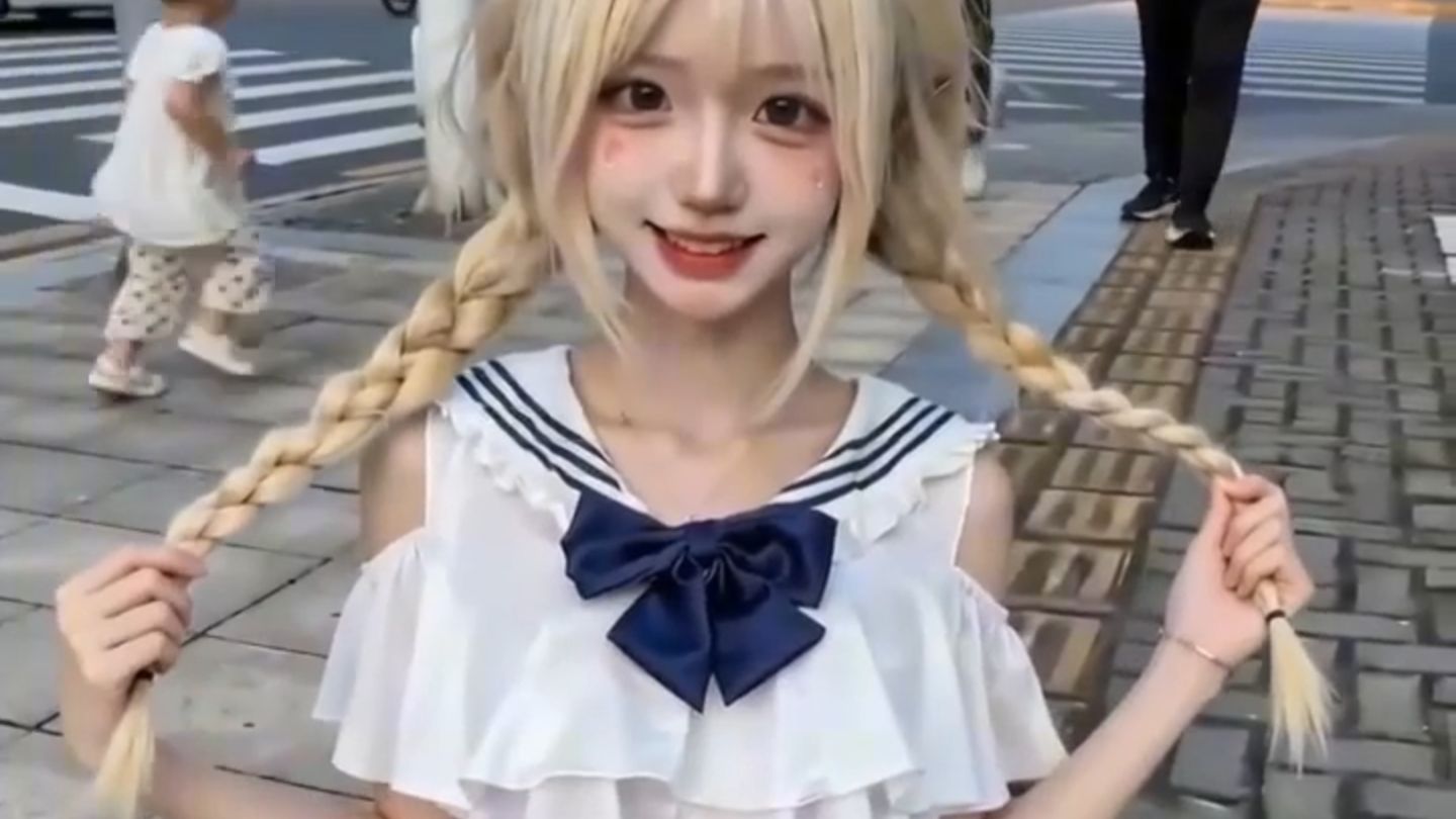Punggung gadis itu sangat indah! Gaya rambut ekor kuda kembar sungguh lucu!