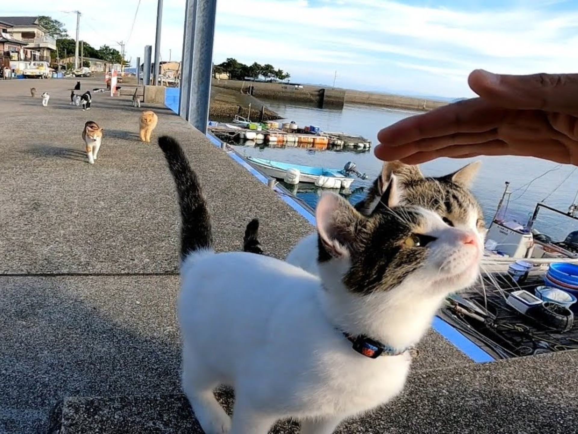 [Hewan]Memberi sarapan untuk kucing di pulau kucing