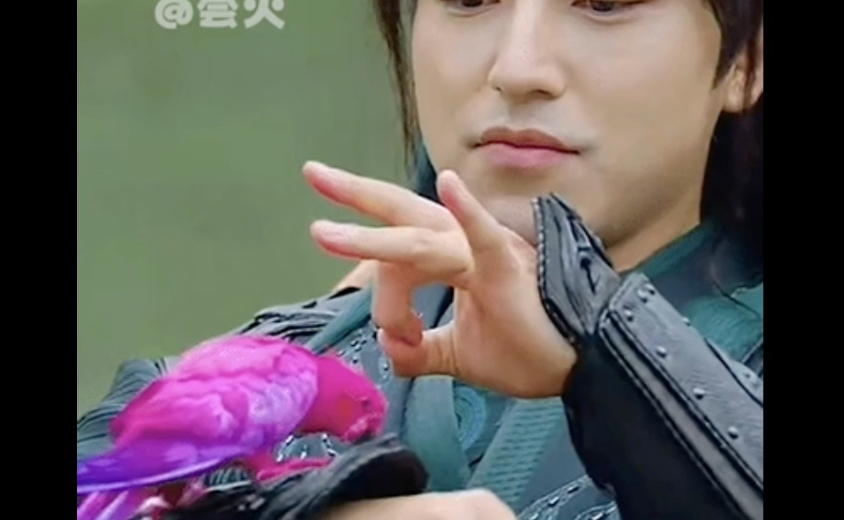 Burung beo itu menggigit-gigit sembarangan dan sang pahlawan wanita memarahinya. Burung beo itu mala