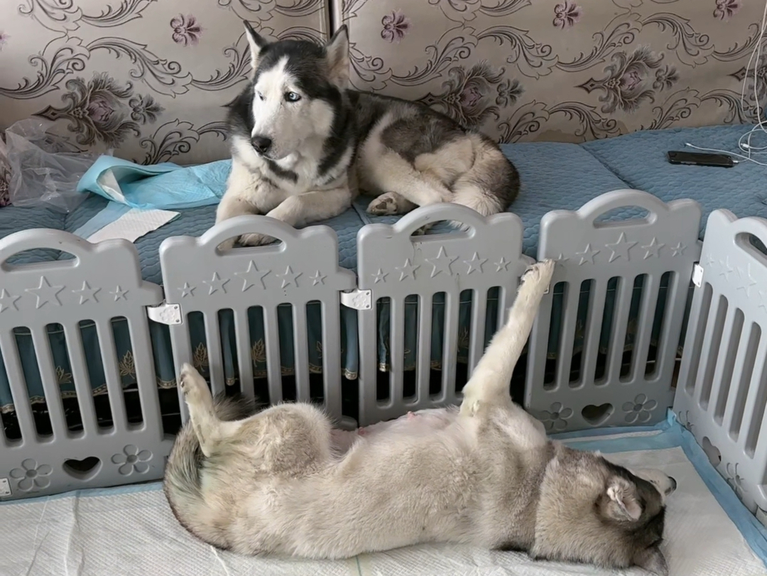 Bayi menangis tanpa henti, Husky menghiburnya sekuat tenaga, lucunya!