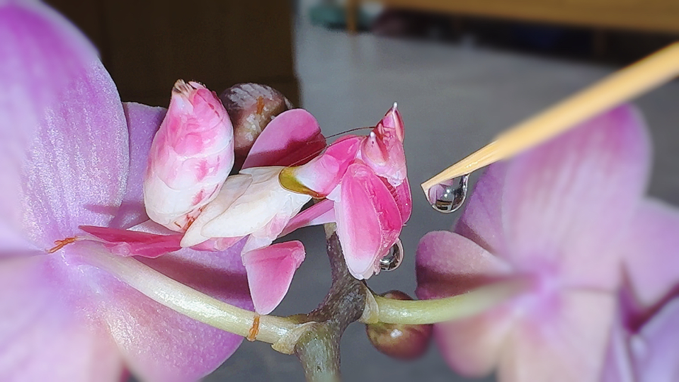 Kecoaknya lagi ganti kulit, lempar aja ke belalang sembah! Enak banget, nyaman banget!