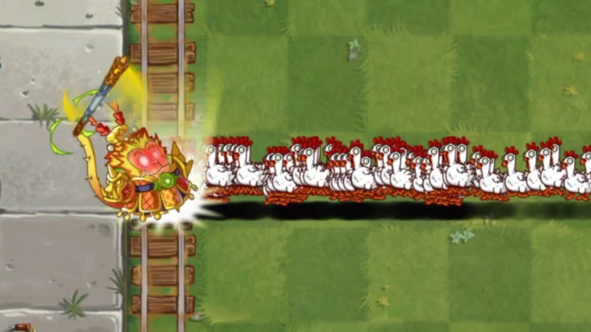 Tantangan PvZ 2 - Semua tanaman level 1 melawan 100 zombie ayam menggunakan 1 power-up - siapa yang