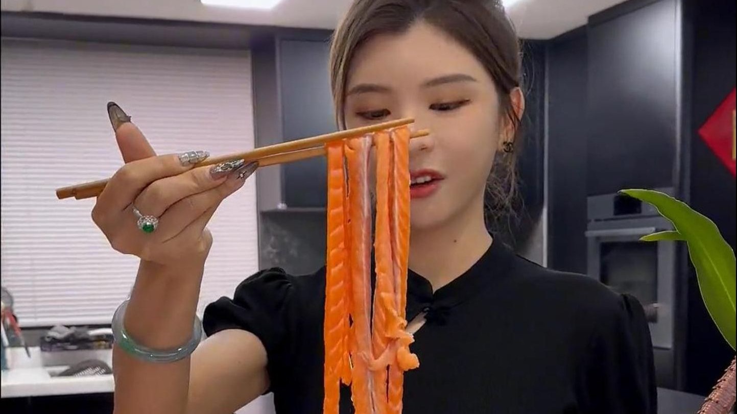 Song Song menantang mi kalkun pedas + gigi yang hilang