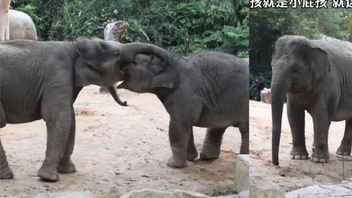 Is the sand delicious today or what? Wangzai and Xiaofeng are both playing the game of eating sand