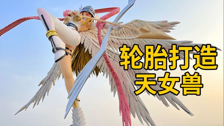 To childhood! ! I actually used 500 tires to build a battle tyrannosaurus! ! The moment when the whi