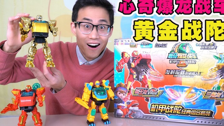 Unboxing the heart-pounding dragon chariot, the golden triceratops, and the tyrannosaurus mecha, who