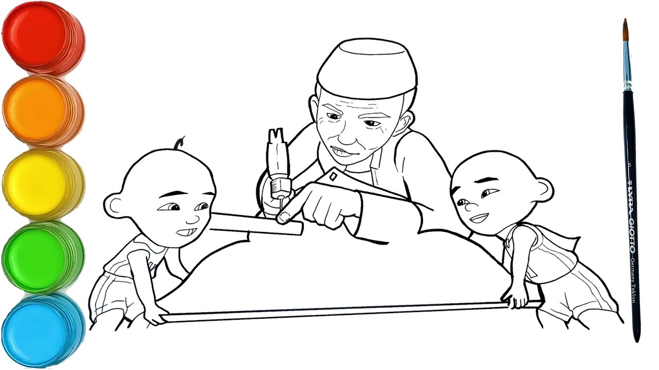 Menggambar dan mewarnai Upin Ipin membuat Gerobok Rezeki bersama tok dalang