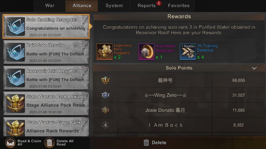 New Year 1 Jan 2023 [WIN] State of Survival : Reservoir Raid