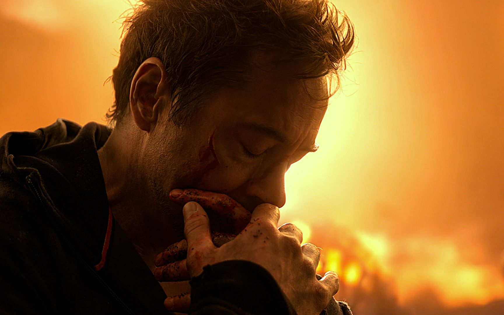 Cut to three in the morning, crying, thinking of Tony and Jarvis