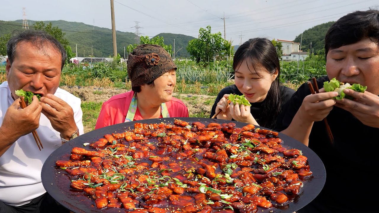 mukbang | Green onion stuck in pig's nose | Fatty fish | Fish head with chopped pepper | food