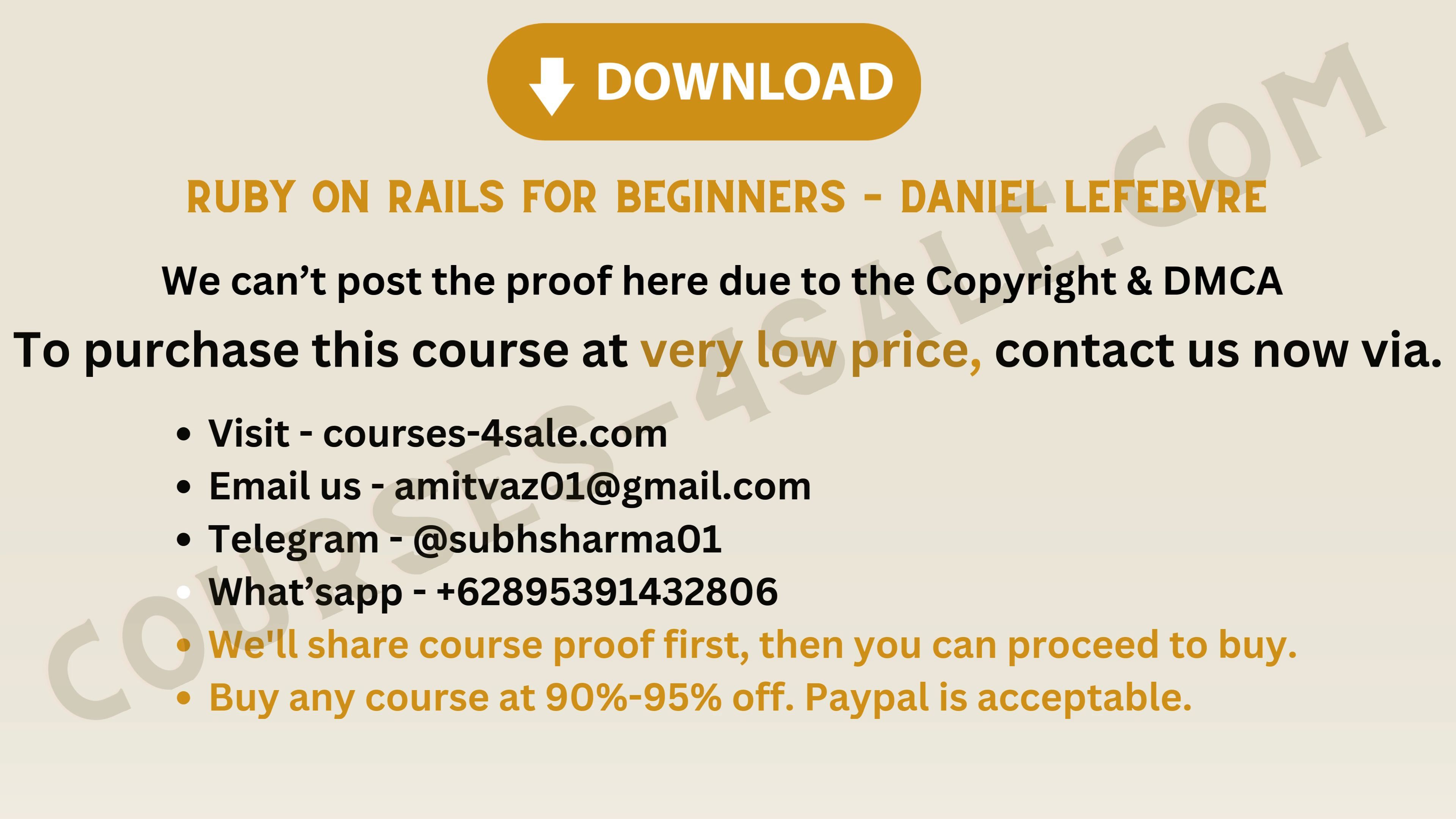 Ruby on Rails for Beginners – Daniel Lefebvre, This course is now available to download. You can get this course at very affordable price.