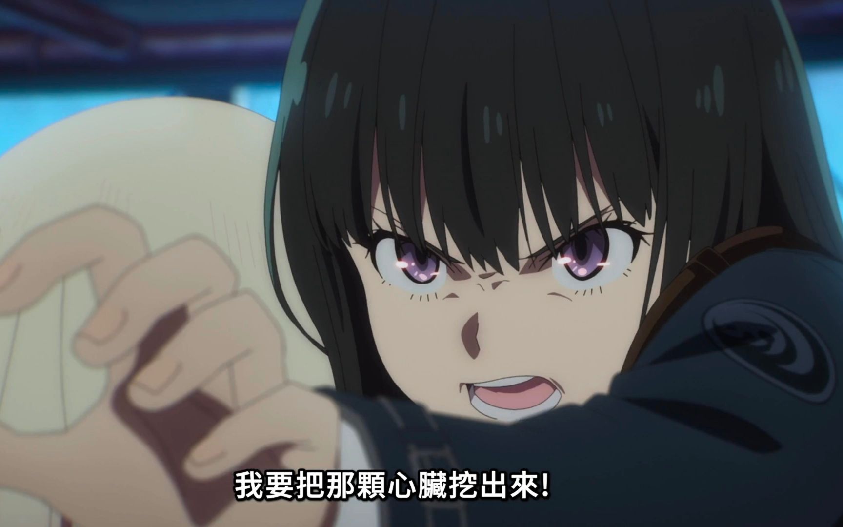 Ricoris Episode 11, Superman Takina breaks the door to save Chizuru