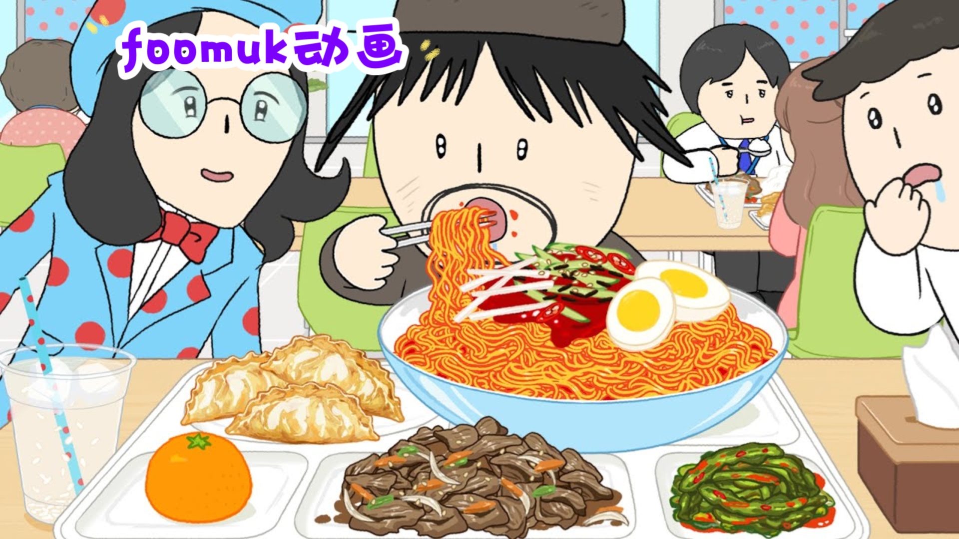 【foomuk animation】School lunch is delicious! Fried rice with deep-fried sauce and udon noodles with