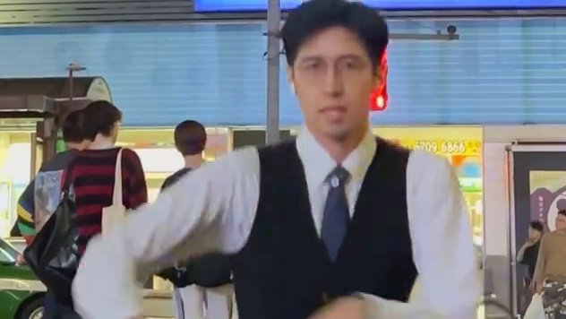 Twisting lightly with a Japanese guy on the streets of Roppongi