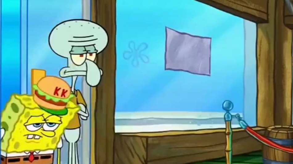 Squidward sneaks into the Krusty Krab and steals the Krabby Patty, but is caught by SpongeBob