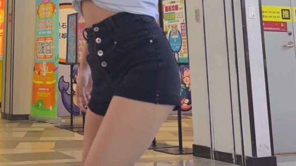 Passerby C, fishnet stockings, denim shorts, full-screen zoom