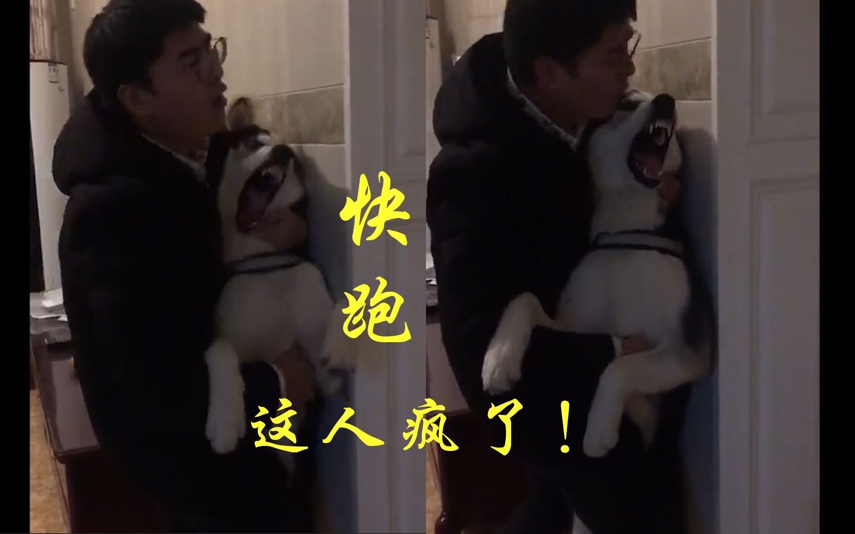 There is a pot of meat next to the "tiger". Border Collie VS Husky, who dares to eat it?