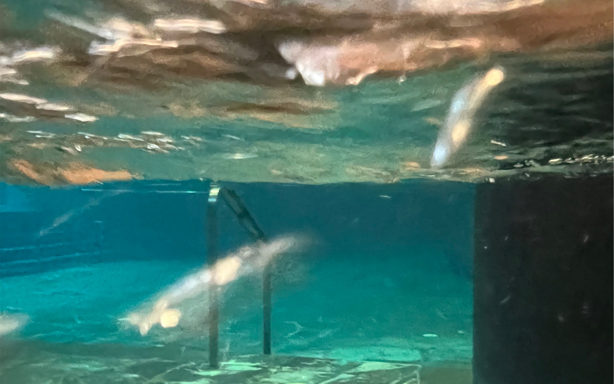 The swimming pool is full of legs.