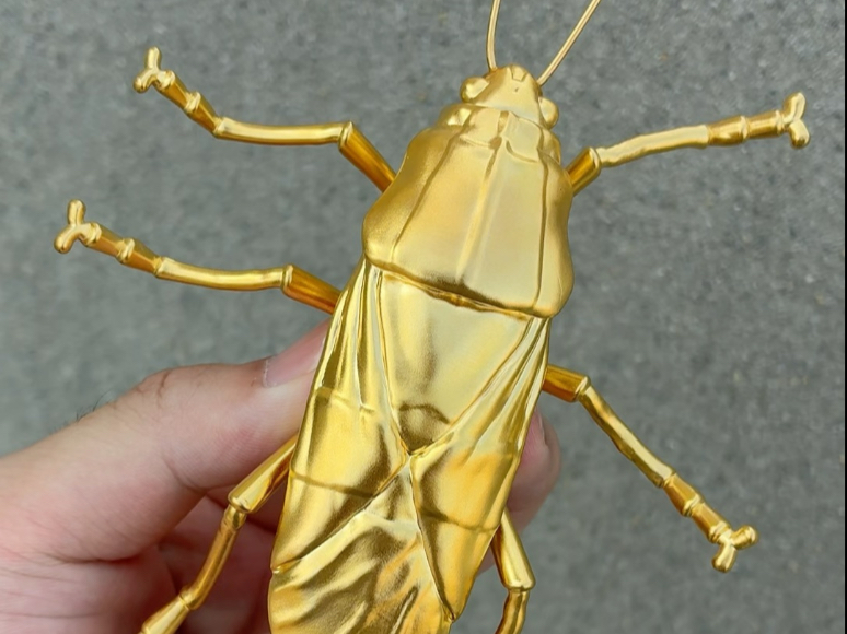 A gold filigree inlaid bracelet made with 3000 meters of gold thread in half a year (pure music vers