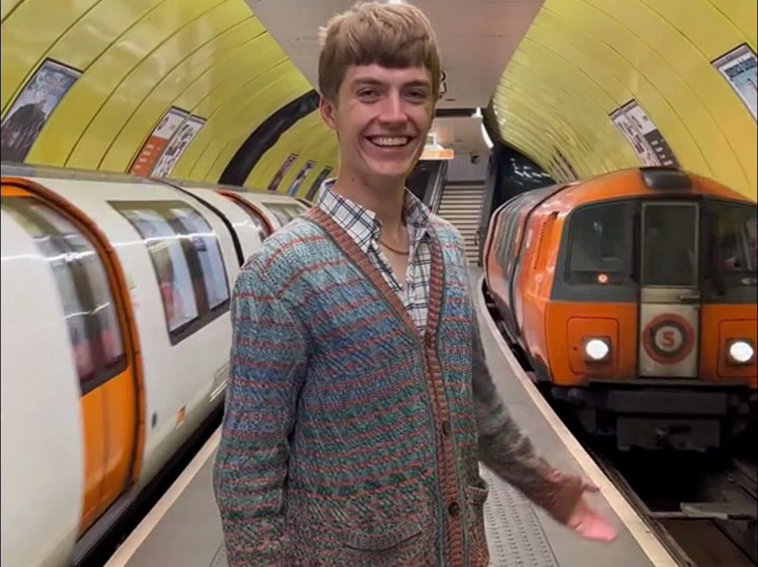 Blowing a big bubble gum on the subway scared the little girl opposite