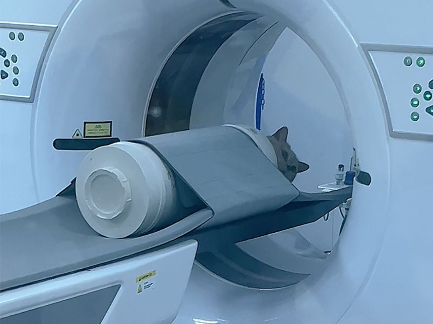 The cat kept acting coquettishly and begging for mercy during the physical examination, but the doct