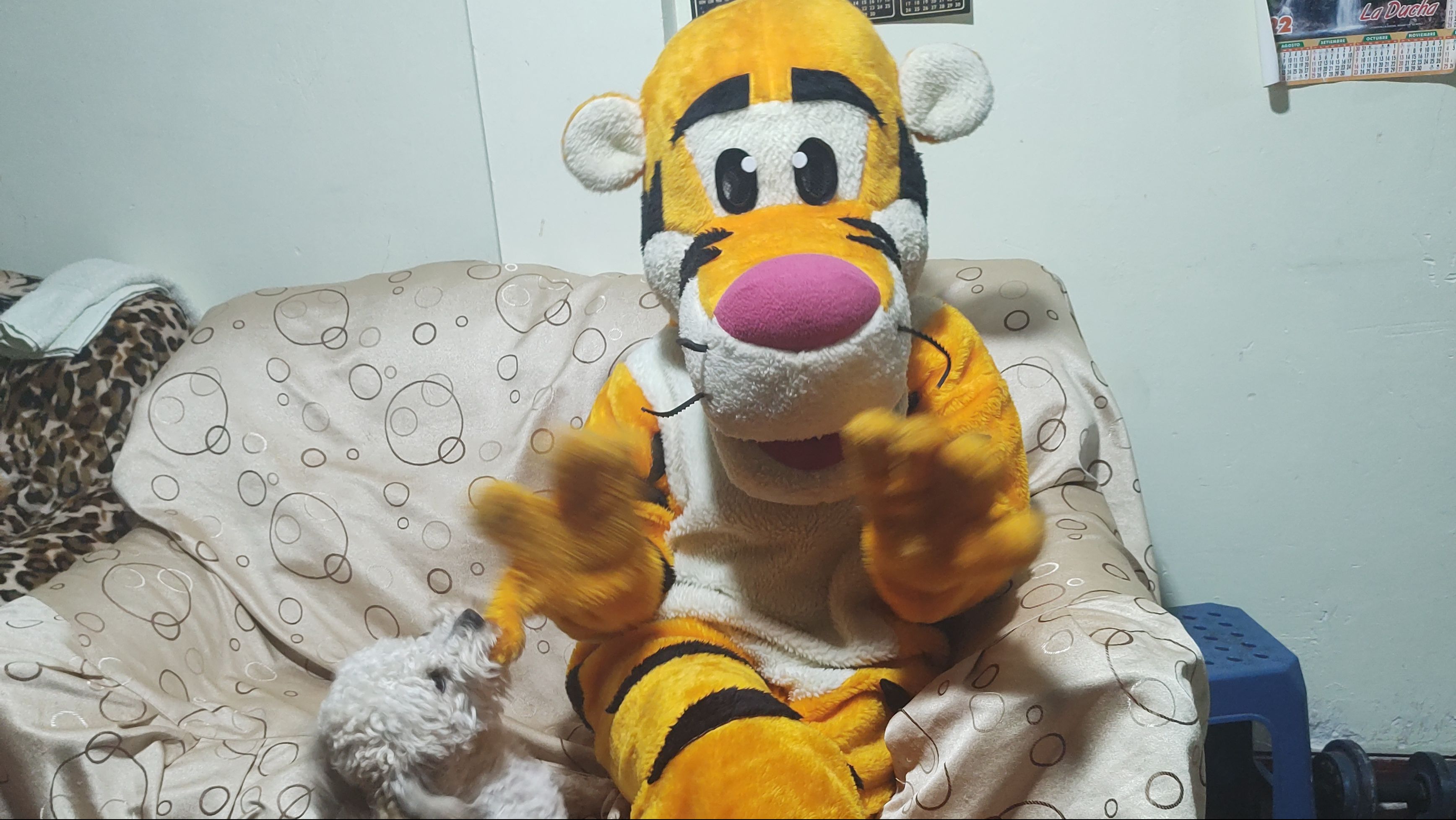 The twin sisters who keep jumping around don't seem to feel tired, but their mother must be very tir