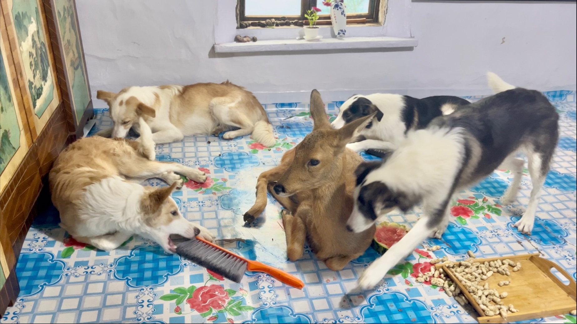 At three in the morning, the silly roe deer broke the glass just to hear the dog snoring