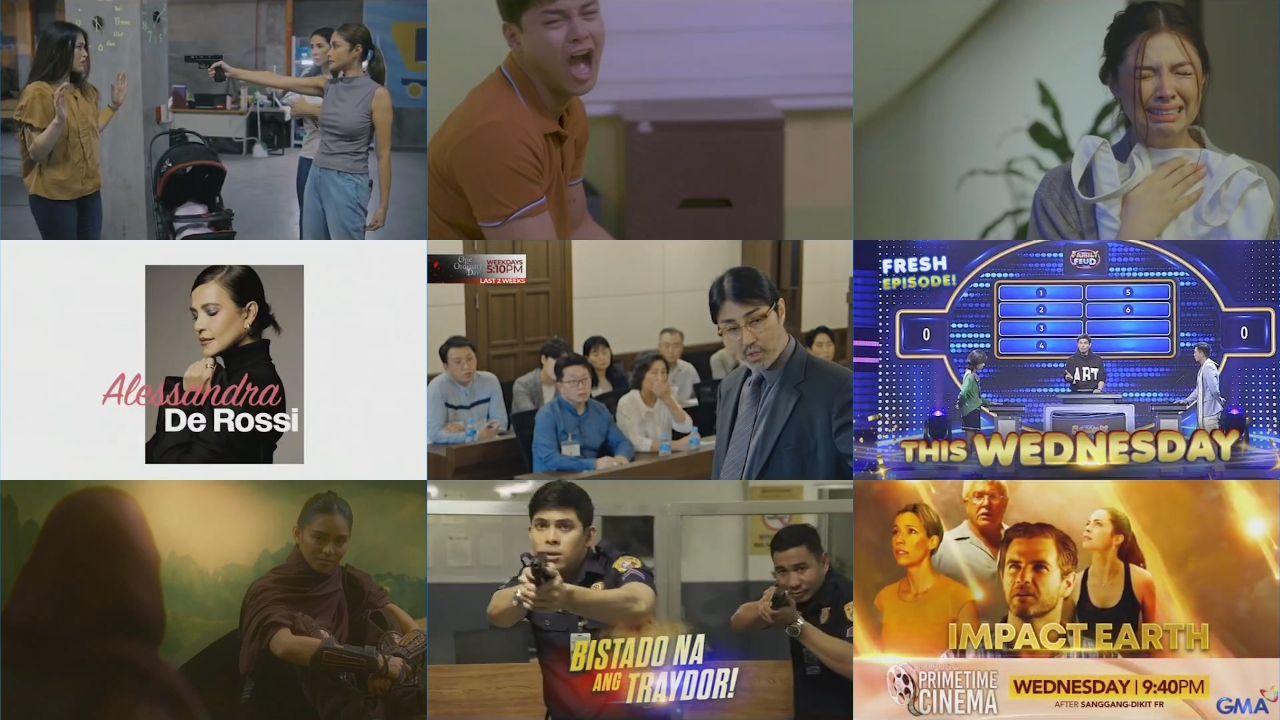 (October 08, 2025) (Wednesday/Miyerkules) All GMA 7 Network Philippines Teaser, Promo & TV Commercial: Unang Hirit Cebu Lindol/Earthquake GMA Astig Authority One Piece Dressrosa Arc (Tagalog Dubbed) (Version 03) GMA Fantaseries Love Between Fairy and Devil/Love Between Fairy Moon Supreme (苍兰诀) 5 Week (Tagalog Dubbed) Bread, Love and Dreams/The Baker King (제빵왕 김탁구) Tagalog Dubbed (Rerun) Week 2 Kapuso Movie Festival Nobody 1 (Tagalog Dubbed) Tiktoclock It's Showtime! GMA Afternoon Prime My Father's Wife Episode 93 Cruz VS Cruz Episode 58 Akusada Episode 72 Fast Talk with Boy Abunda Episode 699 - Alessandra del Rossi GMA The Heart of Asia One Ordinary Day (어느 날) Last 2 Weeks Episode 33 (Tagalog Dubbed) Family Feud Philippines Episode 838 The Breaking Muses VS Mister Tourise World Philippines GMA Primetime Encantadia Chronicles: Sang'gre Episode 83 Sanggang-Dikit FR (for real) Episode 78 Kapuso Primetime Cinema Impact Earth Tagalog Dubbed GMA The Heart of Asia When I Marry A Stranger/Jao Sao Jum Yorm (เจ้าสาวจำยอม) (Tagalog Dubbed) Episode 23 Wicked-in-Law/Devil-in-Law (สะใภ้สายสตรอง) Rerun/Replay (Tagalog Dubbed) Week 5 GMA 7 Network Voice Over Narrator: Weng dela Peña (GMA 7, DZBB (2025))