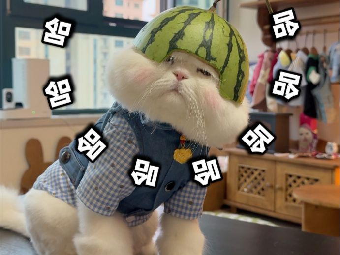 The little cat boss is trying hard to attract customers