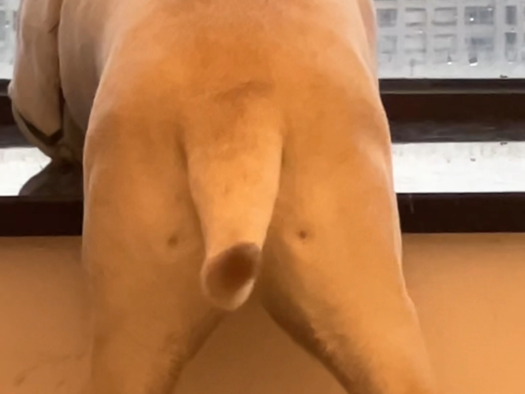 Hilarious! The big golden retriever was tricked by his owner into taking a bath in the bathroom. Whe