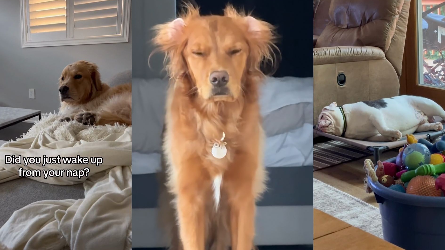 Hilarious! The big golden retriever was tricked by his owner into taking a bath in the bathroom. Whe