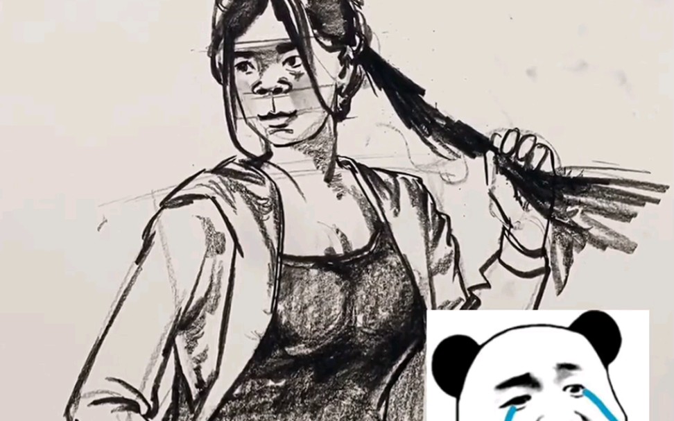 The street painter customized a cartoon portrait for the young lady. As soon as the outline of the e