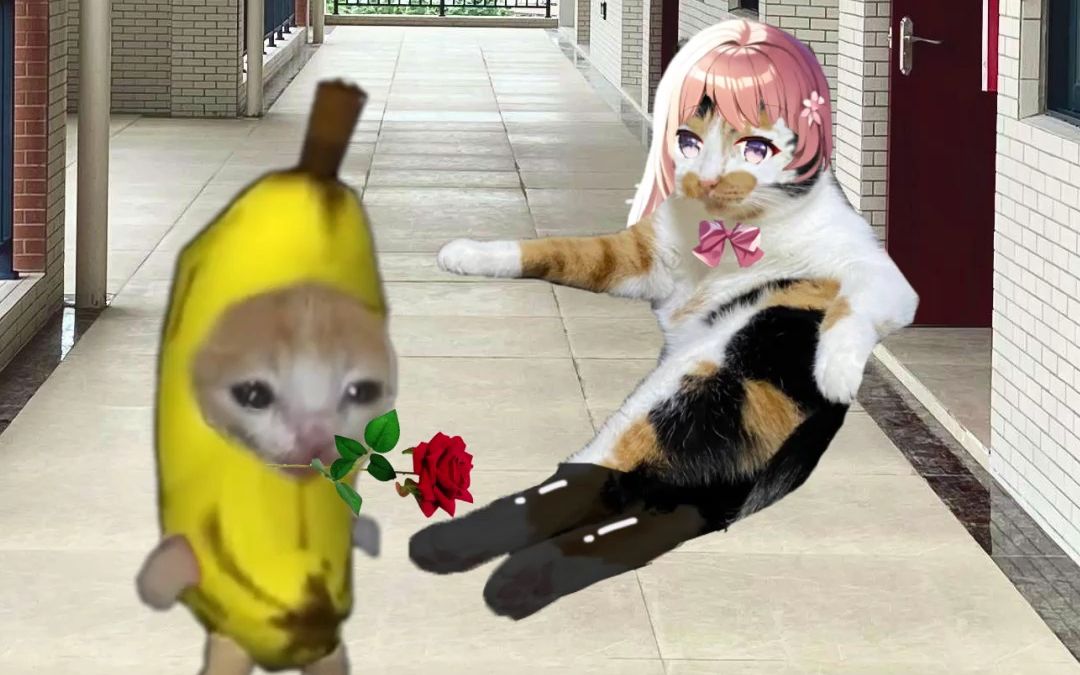 The weather is too hot, so Banana Cat decides to go to the mall to enjoy the air conditioning.