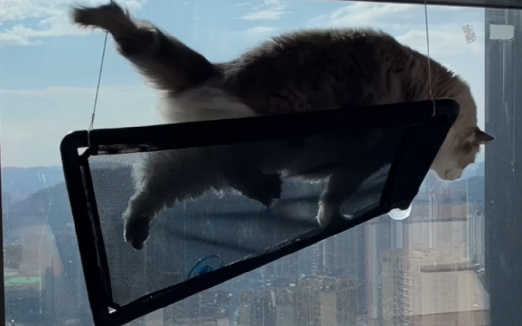 The 20-pound ragdoll cat’s noisy landing action