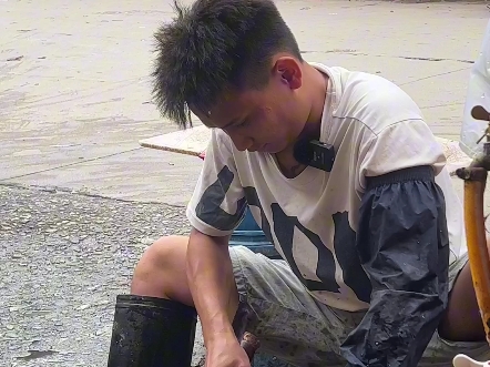 The elder brother fed the fish like a pet, patted his head, no hurry, let's take them one by one