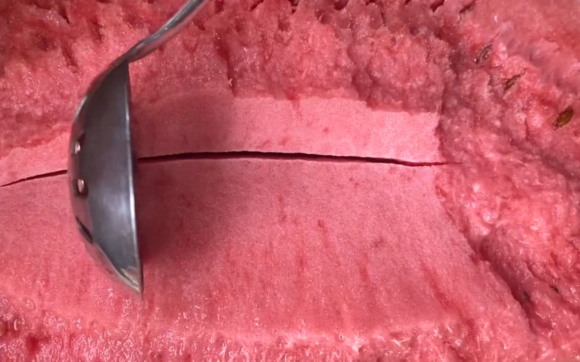 Plasticine stop motion animation: Cutting a frozen watermelon again in late summer