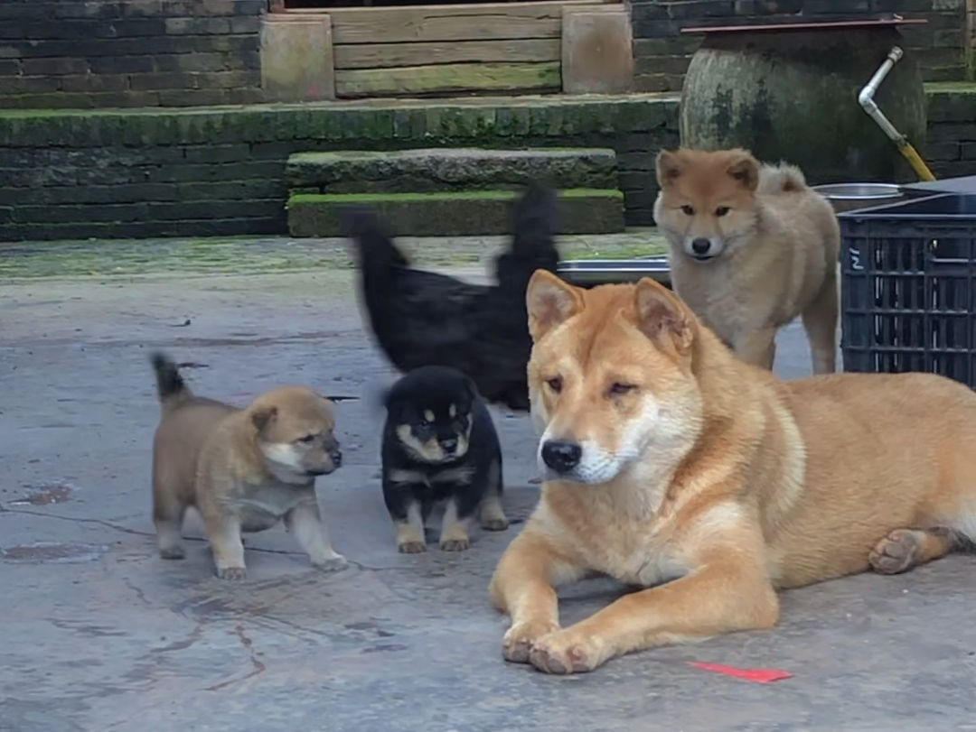 When the little girl came home from school, she was greeted by three Chinese pastoral dogs. This has