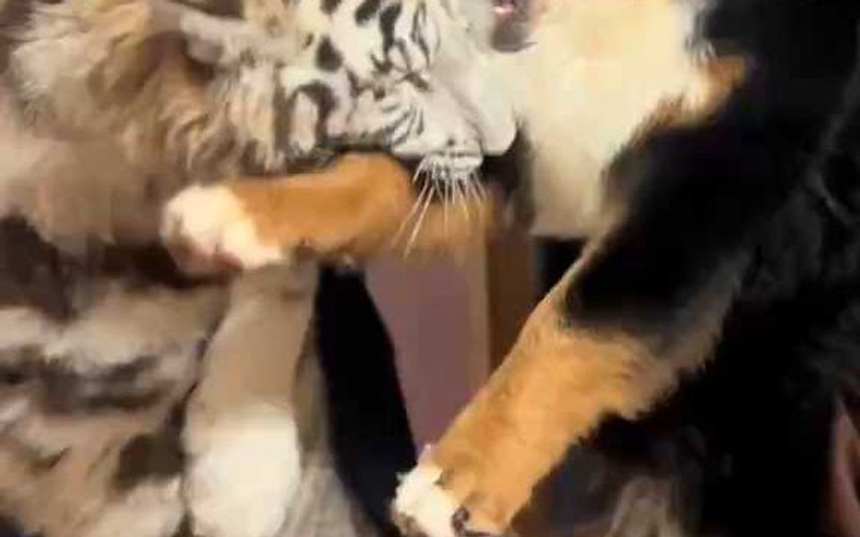 Two-headed white tiger cub meets tourists for the first time