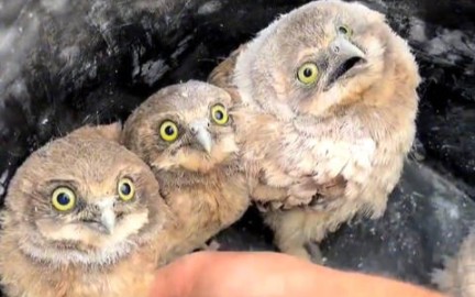 An owl couple, overcoming the grief of losing their own offspring, adopted two young tawny owls [Rob