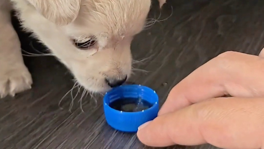 [Animals]The puppy is waiting for the owner to come home in the rain