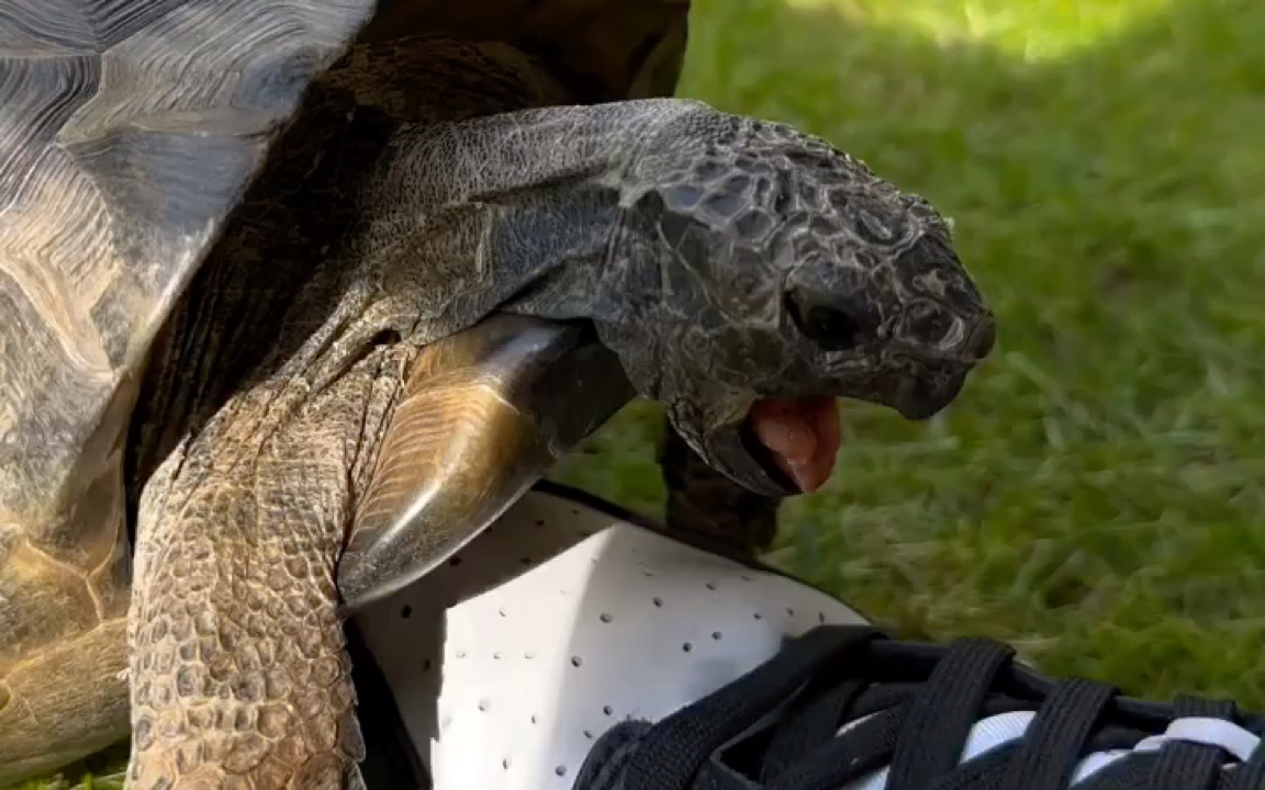 In the real-life "tortoise and the hare", the tortoise proved with its strength that the hare did no