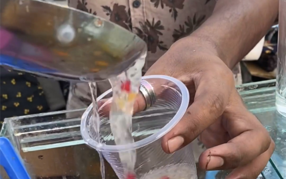 A street version of "Fruit Ninja", his knife skills in peeling and dicing are as smooth as flowing w