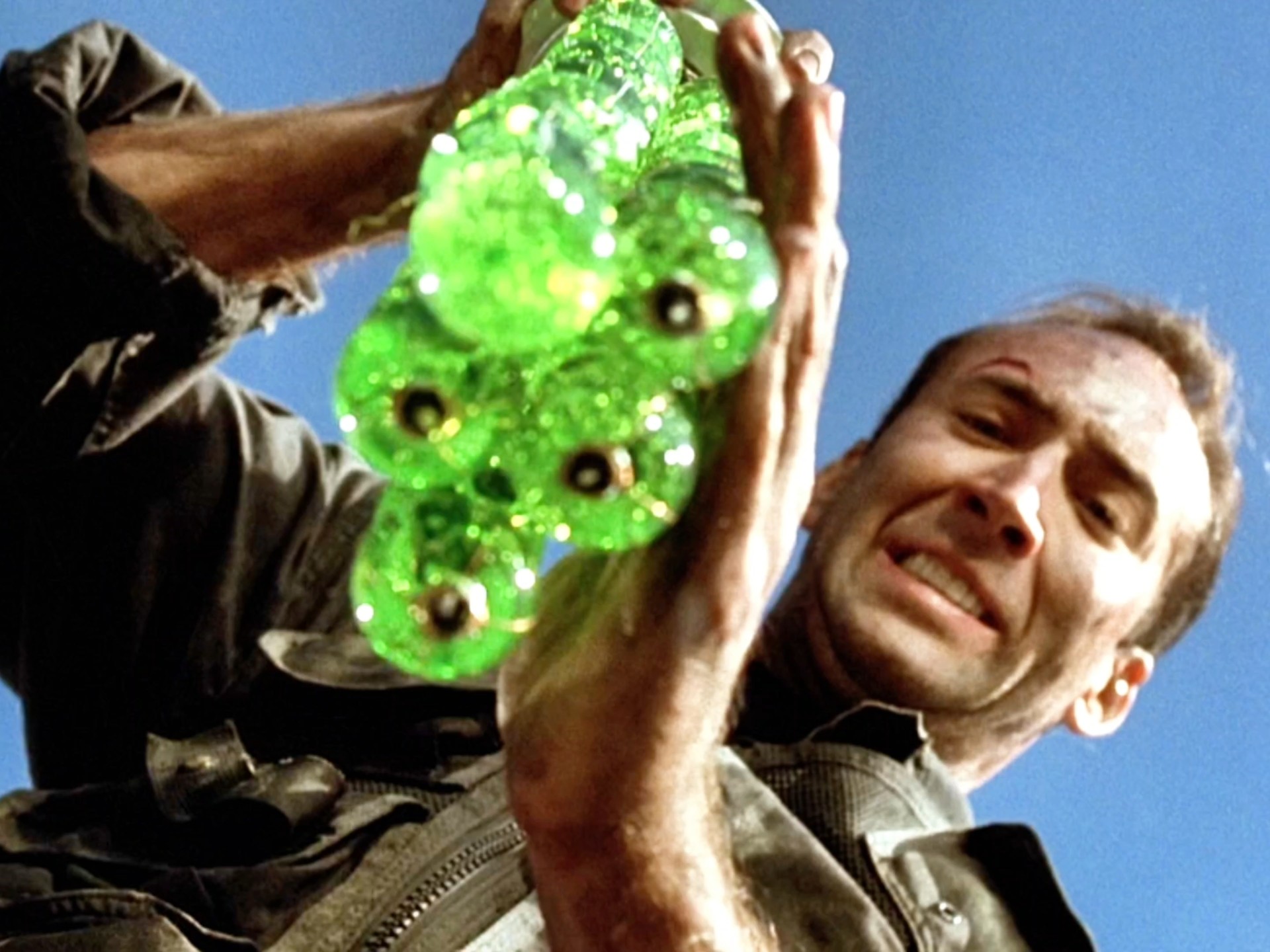 A man greets a Martian, only to have his neck snapped unexpectedly—From "Platinum End"