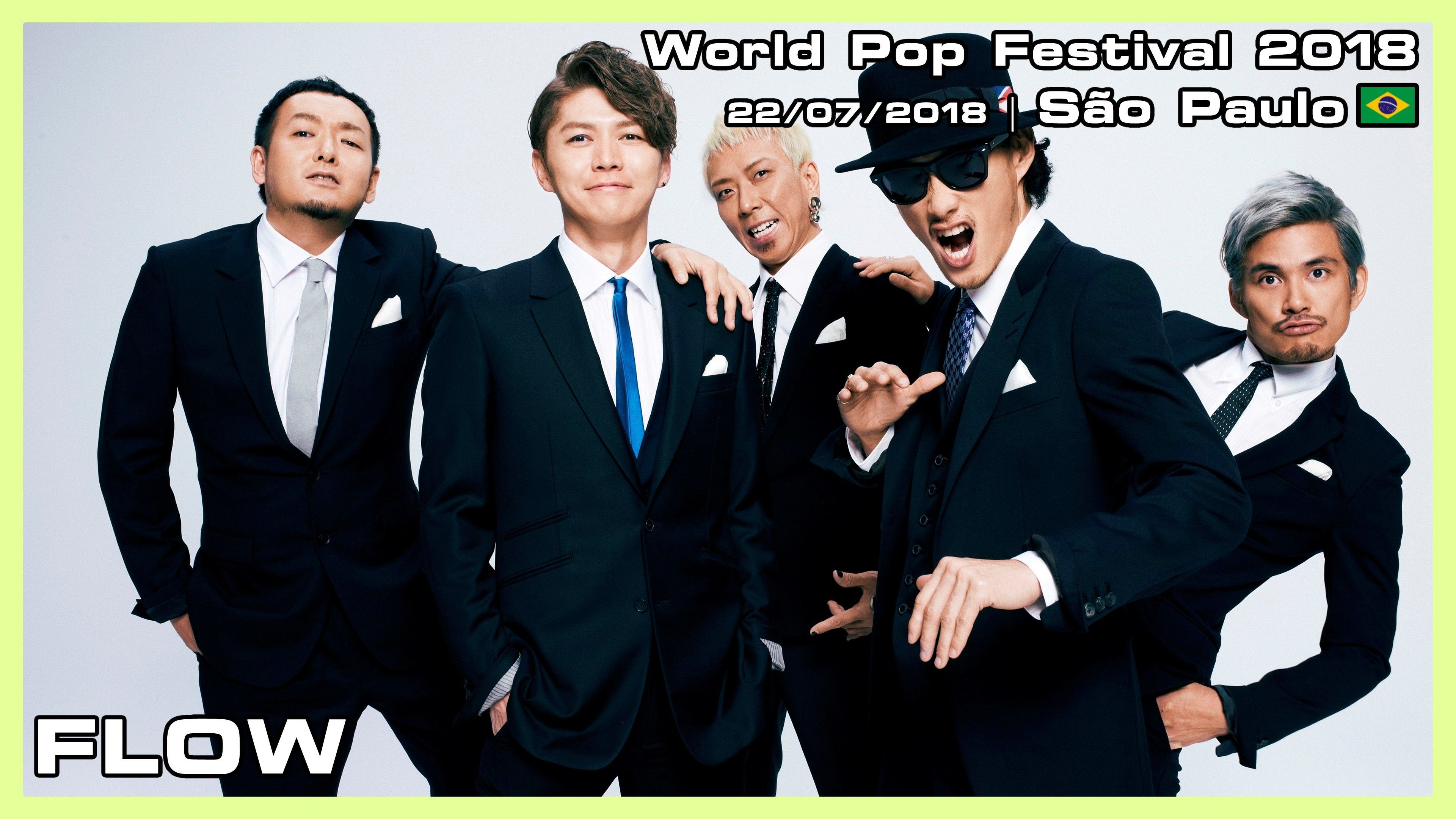 :: Informações: - Participante(s): FLOW [Kōshi (Vocal/Guitarra), Keigo (Vocal), Take (Guitarra), Got's (Baixo), Iwasaki (Bateria)] - Evento: World Pop Festival 2018 - Local: São Paulo (Brasil) - Data: 22/07/2018 :: Setlist: 1. Hey!!! 2. Steppin' out 3. Days 4. BlazBlue/Brave Blue 5. Cha-la Head Cha-la 6. HERO ~Kibō no uta~ 7. Ai ai ai ni utarete bye bye bye 8. Colors 9. World End 10. Kaze no uta 11. Innosense 12. Hikari oikakete 13. Re:member 14. Niji no Sora 15. Sign 16. GO!!!